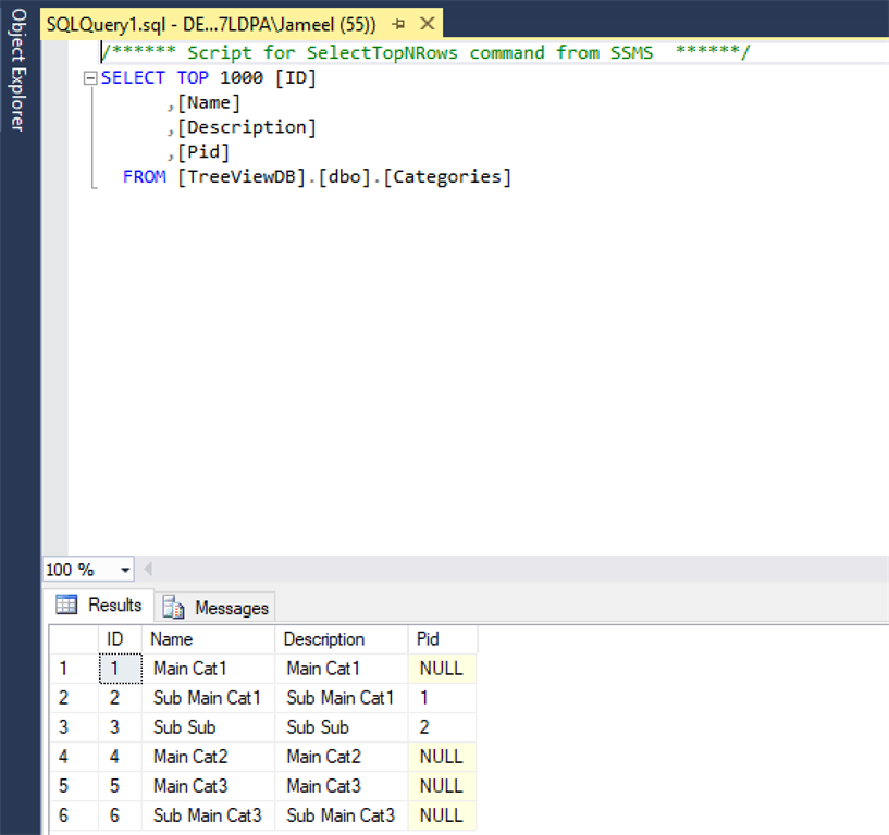 - new Category { ID =1 , Name="Main Cat1" , Pid = null , Description = "Main Cat1" },