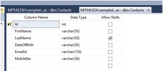 - Create a database. Here, I took an example of database, “Sample database,” and an example of table is “Contacts”.