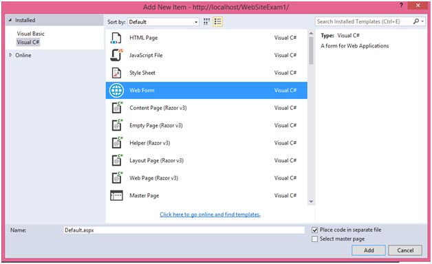 - Right click on the solution explorer and go to Add option and select Add New Item option and select web form and click Add option.