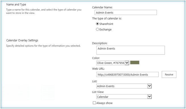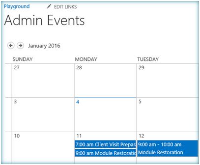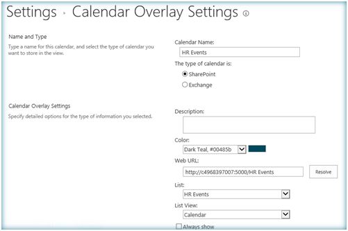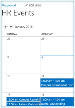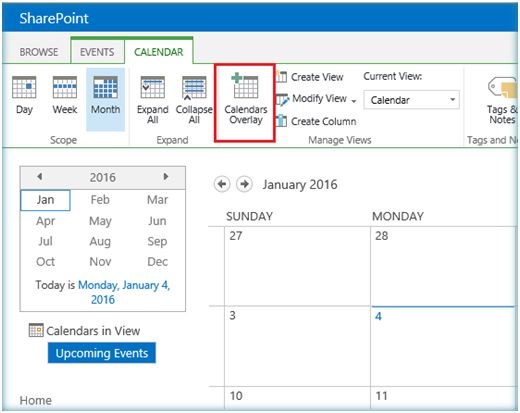 Calendar Overlays are an exciting feature present within SharePoint Calendars by which multiple calendar events can be combined into a single calendar representation. The appointments in the child calendars can be assigned unique colours in the master calendar thereby facilitating quick visual identification. This is how the child calendars overlaid in the master calendar will look: The Calendars in the view will be shown in the left hand pane enabling the user to correlate the events with their associated calendar. Let’s see how we can create a calendar overlay to create a master-child relationship between multiple calendars. Create a calendar of Upcoming Events which will be the master calendar that shows events across other Child Calendars i.e.: Admin Events, HREvents, and FinanceEvents. Let’s create child calendar Admin Events as below: Let’s create child calendar Finance Events and fill up appointments as below: Finally create the child calendar HR Events and fill up the appointments as below: Now let’s create the Calendar Overlay to super impose the Child Calendar Events on to the Parent Calendar -Upcoming Events. Click on New Calendar to add the Child Calendar View to the Overlay View. Specify the HR Events Calendar URL and the colour by which its events should appear as overlay in the Parent Calendar. Click on New Calendar again and add Admin Events Calendar to the Overlay View specify the URL and the color by which the Admin Events should appear as overlay in the parent calendar as overlay. Click on New Calendar and add Finance Events to the Overlay View. Specify the URL of the calendar and the color by which the events should appear as overlay. Now the Overlay Calendars will be listed as below: Click on OK to see the final overlay of the Child Calendars in the Parent Calendar. The main calendar will now list events, not only those placed within the main calendar, but also the ones created in the child calendars. Any new Event created in the Child Calendar will be automatically updated in the parent calendar.