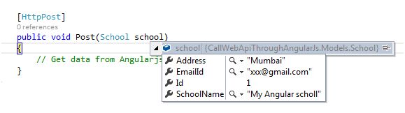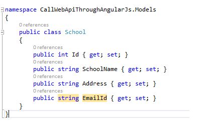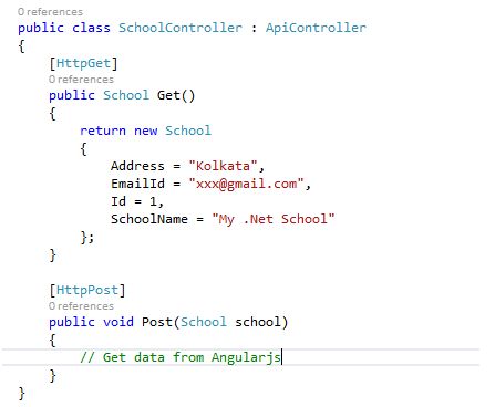 Now, in controller folder, create a SchoolController. In this controller, define two methods, Get and Post.