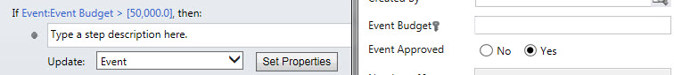 11. Similarly add update steps immediate after, Otherwise set and this time set Event Approved to false using Set Properties button.