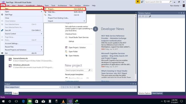 Click File —> New —> Project or shortcuts (Ctrl+Shift+N).
