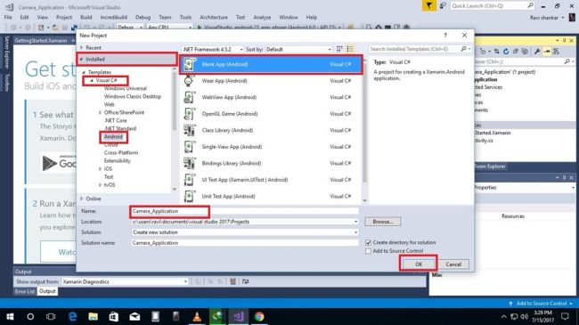 Go to Visual C# --> Android –> Blank App (Android); change your application name and click the "OK" button.