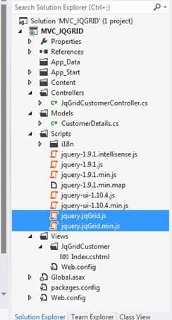 - Install jqGrid libraries from Manage NewGet packages.