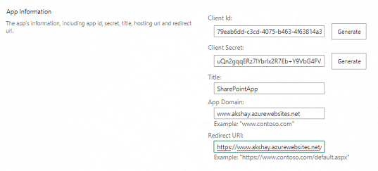 As we are going to access SharePoint data in our application as an app, we need to register our app to SharePoint environment and get Client Id and Client Secret.