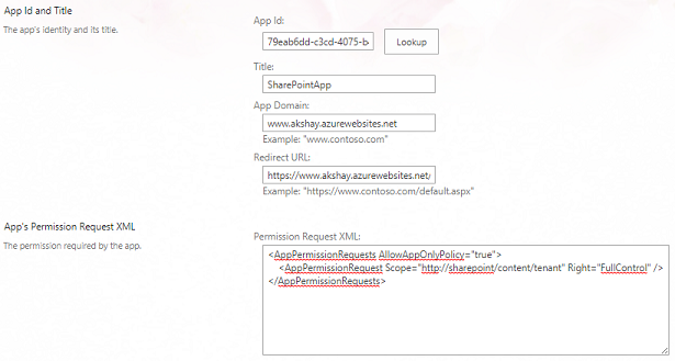 It will populate all information of app you have entered in the above step. Provide app permission XML in App Permission Request XML textbox.