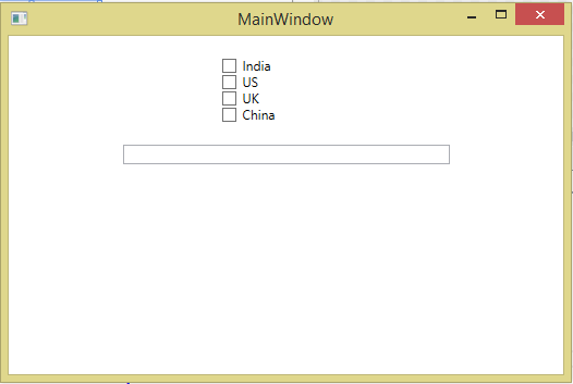 Let’s take an example to create one WPF Application, put four check boxes and put one text box in it. The user has to select the check box and whatever check box the user selects, you have to display the list of all the checked checkboxes in the text box.