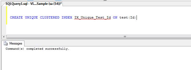 CREATE UNIQUE CLUSTERED INDEX IX_Unique_Test_Id ON test(Id)