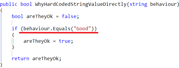 Don't use magic value (hard coded string, number) directly in your code block. Place all of the hard coded values into one separate class or at least on top of the class. It will improve code manageability.