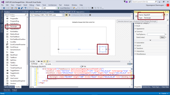 Add the Rectangle control for displaying the Color picker selected color using Fill property