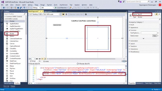Now, you have successfully tested Code4Fun ToolKit – ColorPicker in Visual C# - UWP environment and changed the border background color with the button control.