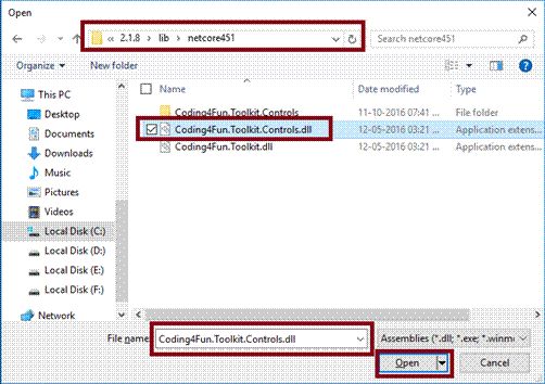 Select the file Coding4Fun.Toolkit.dll and filter the Coding4Fun.Toolkit controls.