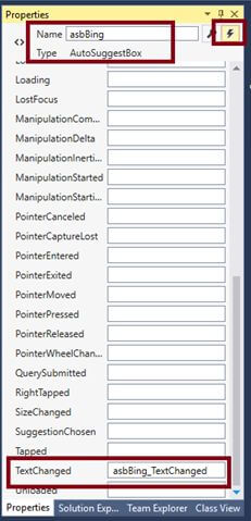 Add the TextChanged event method for getting Auto Suggest text from Bing