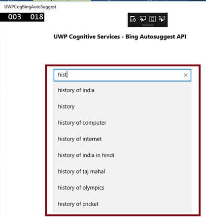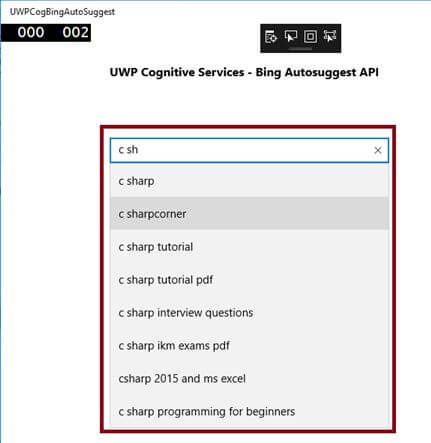 Reading this article, you can learn how to use Cognitive Service Bing AutoSuggest API in Universal Windows Apps development with Azure, XAML and Visual C#.