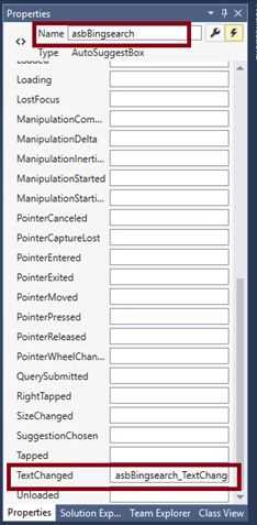 Add the Textchanged event method in Auto Suggest Box for getting suggestions for the text from Bing
