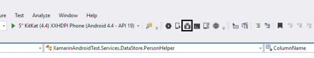 - Visual Studio automatically detects the running Android device, and you can push your application to the running emulator and run it in super-fast mode.