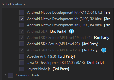 - Or by going to Visual Studio and running Android SDK from the Android Toolkit tray. It will request Admin access itself.