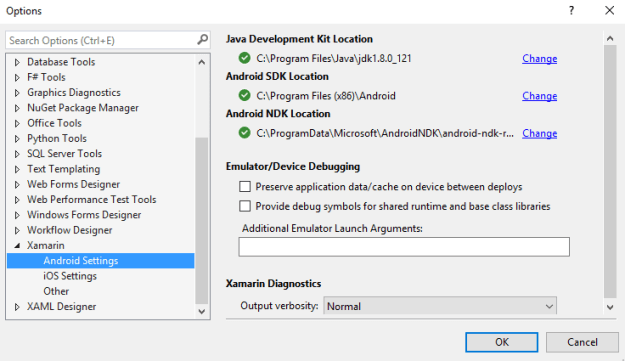 - For that, go to Tools → Options → Xamarin → Android Settings.