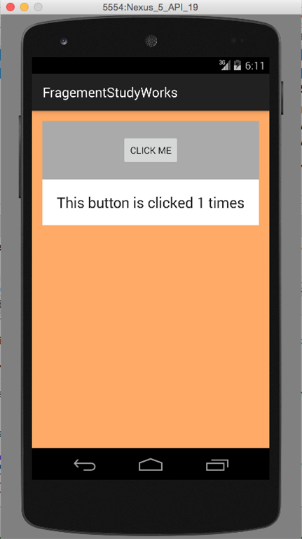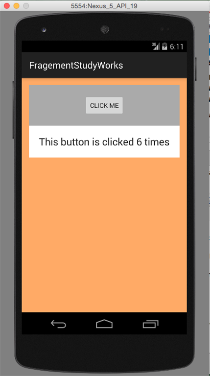 The clicked method will call another method named changeText(String) in Fragment B. Now we need to notify the communicator Interface when Button in FragmentA is clicked and create a method chageText(String) in FragmentB.