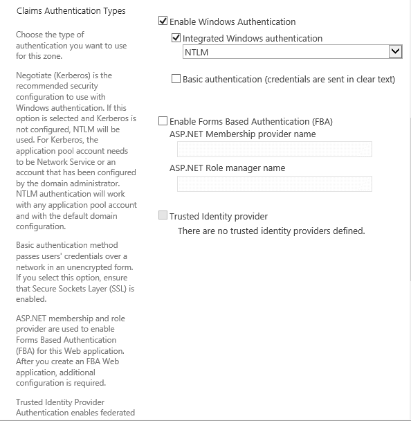 As we can see from the above image we have a default authentication provider which is the Claims Based Authentication.