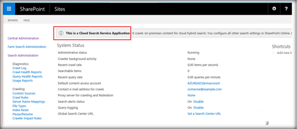 Finally, we will get the success message, which indicates that the Cloud search Service Application has been created.