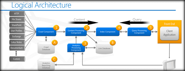 A successfully configured search Service will have all the components, mentioned above, working in unison. Each of the components will have a database created in SQL Server. On a high level, the crawl component is responsible for crawling SharePoint content and collects the crawl properties, which will in turn be sent to the content processing component. The content processing component receives the crawled properties, processes it and sends it to the Index component.