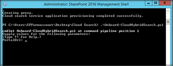 In order to complete the Cloud hybrid search set up, we have to connect the recently created Cloud search Service Application to the Office 365 tenant. Microsoft has provided the script to automate the onboarding of the Cloud search Service Application and Office 365 to Cloud hybrid search. You can get the script named Onboard-CloudHybridSearch.ps1 here.