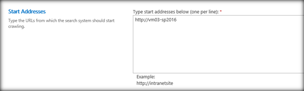 Click Create New Content Source. This will open up the page, where we can add the start address of the content source, which has to be crawled.