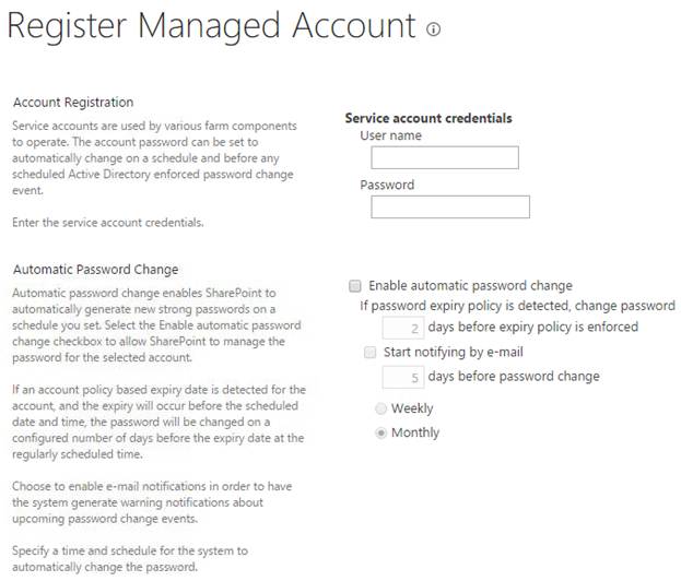 Here, you can add or remove the managed accounts and schedule how frequently they should have a password change on the SharePoint Administration.