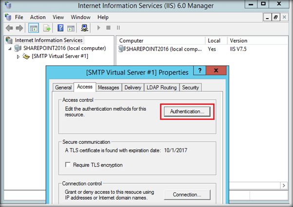 It will open up the properties window. From the "Access" tab, select Authentication.