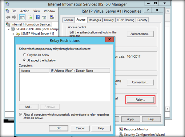 Select the radio button" All except the list below " so that only specified computers can access the Virtual Server.