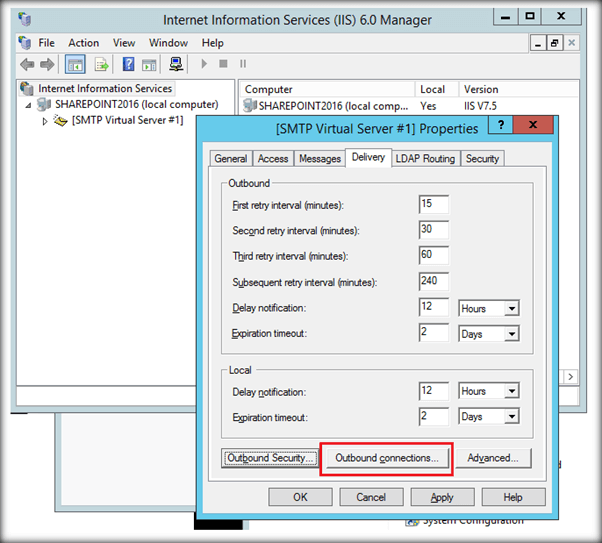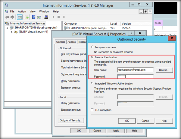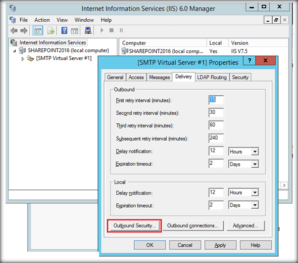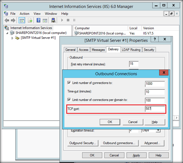 Specify the Outbound SMTP Server, From address, and Reply-to address. SharePoint 2016 provides the option to specify the SMTP Server port and TLS encryption, which was not present in SharePoint 2013.