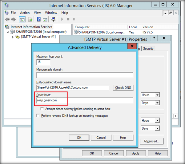 In "Smart host" textbox, enter “smtp.gmail.com”.