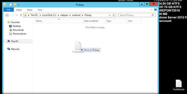 Drag and drop it to the location - C:\inetpub\mailroot\Pickup