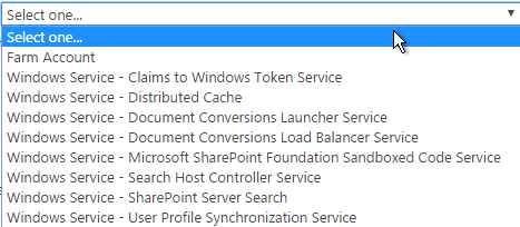 Here, you can add Service accounts to the various components on Central Administration and connect the account to the various Services.