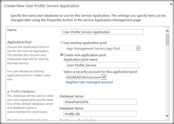 We can assign the name for the Service Application and specify the app pool, which will be used by the Service Application. We can also use an existing Application pool.