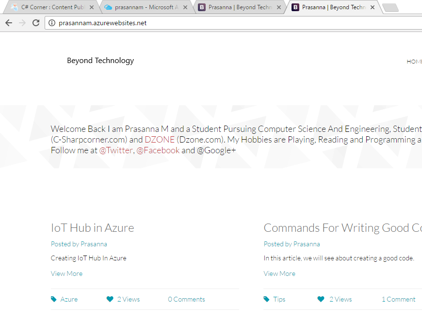 For accessing our created web application use the following URL: http://<appname>.azurewebsites.net