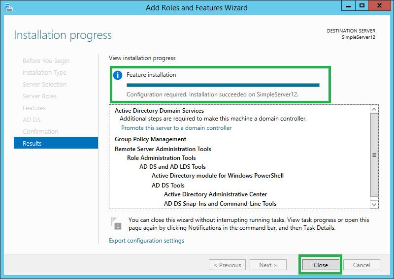 Step 13: Again, All Server Task Details and Notifications Window will appear.