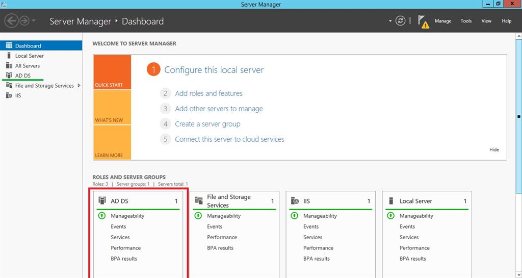 Step 11: Now go to the Server management Dashboard and findthe AD DS option that is available.