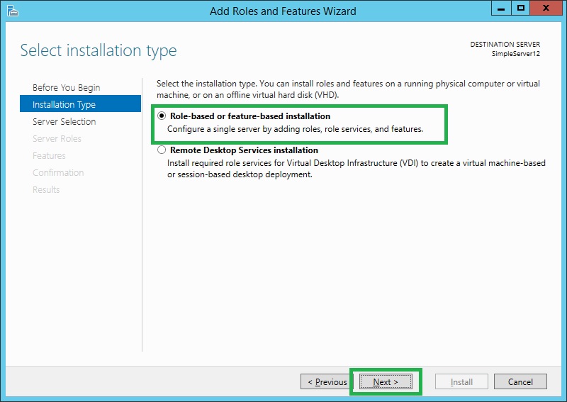 Step 4: In the installation, type “Role based or feature based installation” and click next.