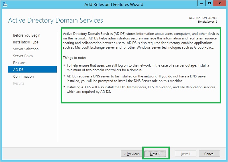 Step 8: In the Active Directory Domain Services Window, read the important things and click next.