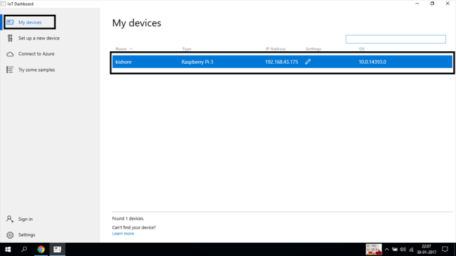 Once you download it, simply boot up your Raspberry Pi. Make sure that your PC and the Raspberry Pi are connected to the same network. If they are in the same network, you can find your Raspberry Pi under the menu 'My devices'.
