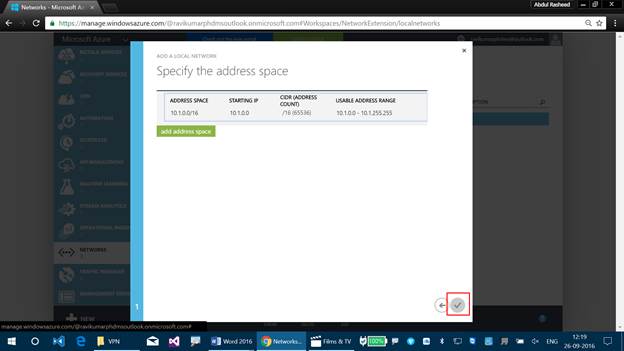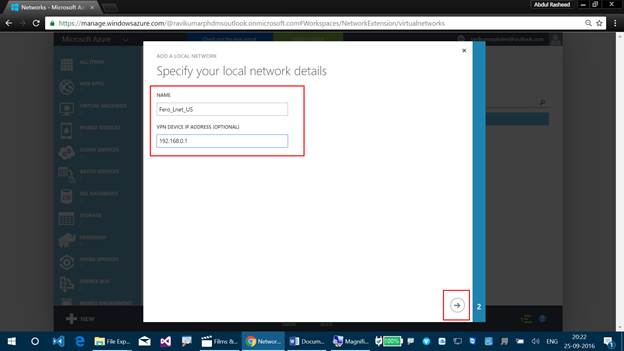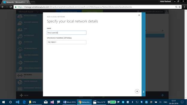 Step 12 - Name the V-net over here with the IP address of VPN,