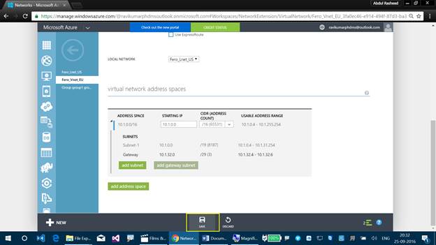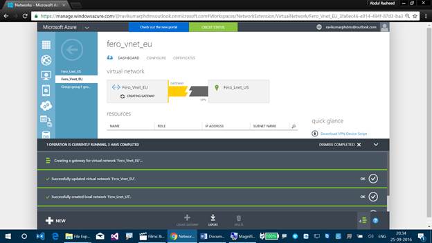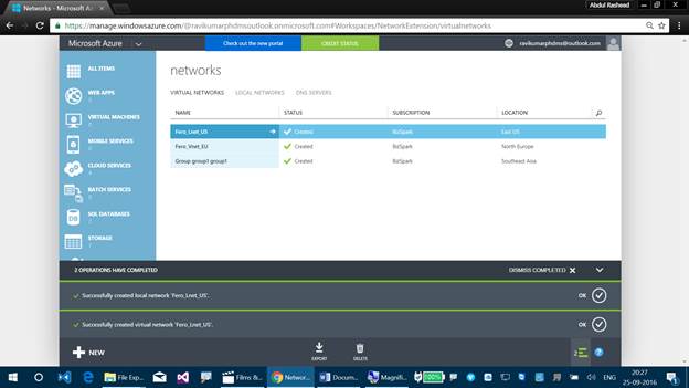 Follow my next article to work on configuring the US v-net site-to-site connectivity, create the VPN gateway for the US v-net, set the VPN IP address in the US local network configuration, set the v-net VPN gateway keys, and check the VPN Connectivity.