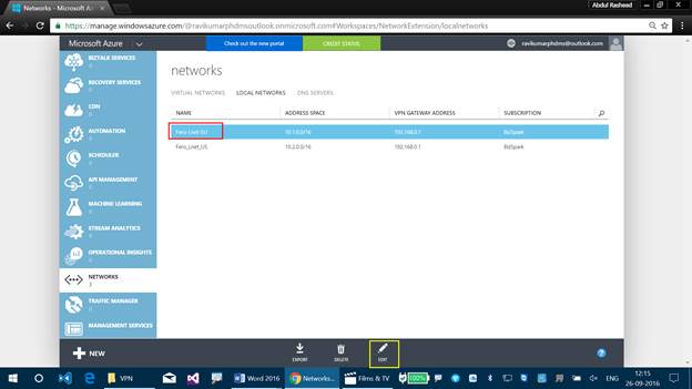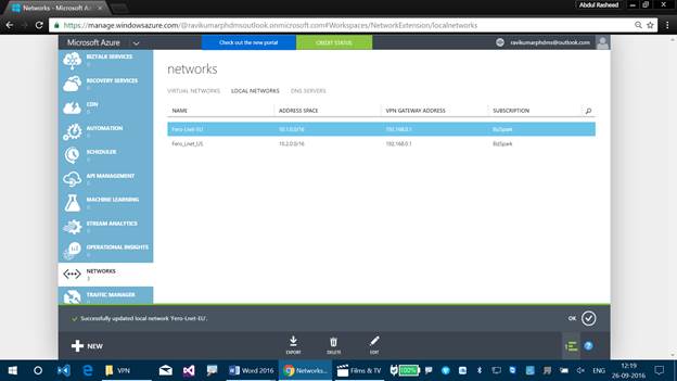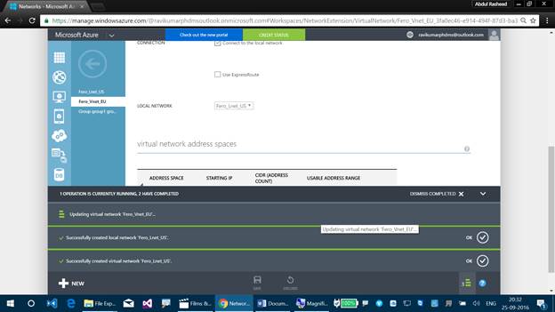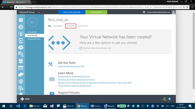 Note - Click here for Part – 1: Configuring site – to – site VPN Connection between two Azure networks