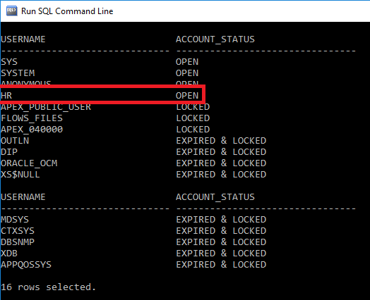 Suppose an unexpected scenario, like if the HR username has the status EXPIRED & LOCKED, then I would type the below-given command