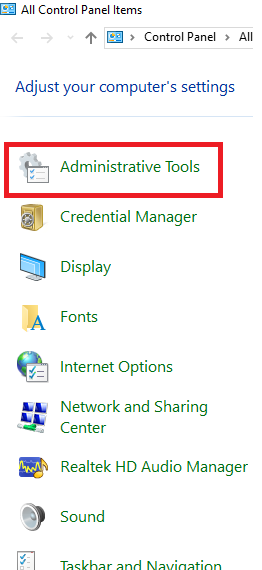 Step 5After getting inside the Control Panel area select Administrative Tools and click on it once.