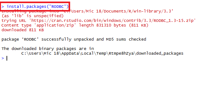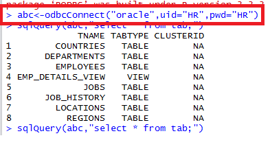 Before typing the above command in the console, first, you have to test the connection string is really working, but this time from R environment. And to do this type the following command given in the picture below.