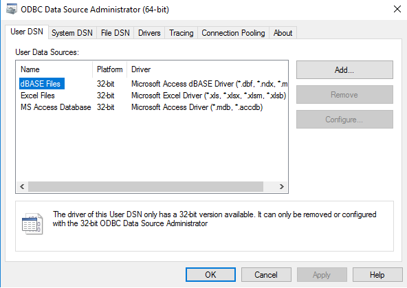 Step 7Upon clicking the datasource, a new window opens where you are supposed to add the datasource in User DSN.